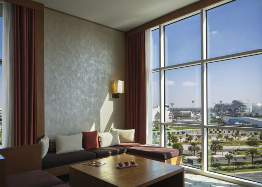 The hotel is just a few minutes walk away from the Yas Marina Circuit, 10 minutes away from Abu Dhabi international airport and about an hour from Dubai International Airport.